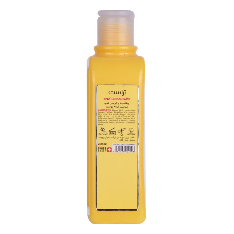 عسل، کیوتن، آمونیوم لورت سولفات، دی سدیم کوکو آمفو دی استات، کوکامیدوپروپیل بتائین، گلیسیرین، زایلیتول، سدیم PCA، عصاره بابونه، آلانتوئین، آب دیونیزه