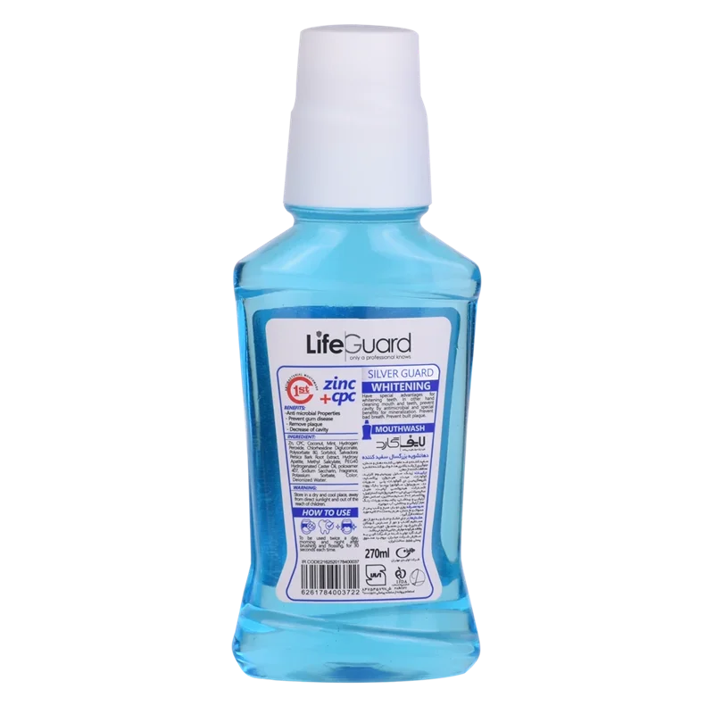 سفیدکننده و ضدعفونیکننده دهان و دندان، جلوگیری از رشد باکتریها، خوشبوکننده تنفس، محافظتکننده از دهان، فاقد فلوراید (Fluoride-Free)
