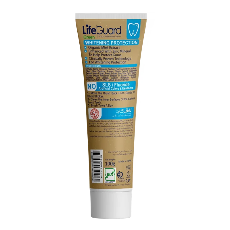 حاوی ترکیبات و عصارههای گیاهی سفید کننده دندان، از بین برنده لکهای دندانی حاوی عصارههای گیاهی، برطرفکننده پوسیدگی، التهاب و بوی بد دهان، افزایش استحکام دندانها و مراقبت از مینای دندان، تقویت مخاط و حفظ تعادل فلور میکروبی دهان، با قابلیت استفاده روزانه