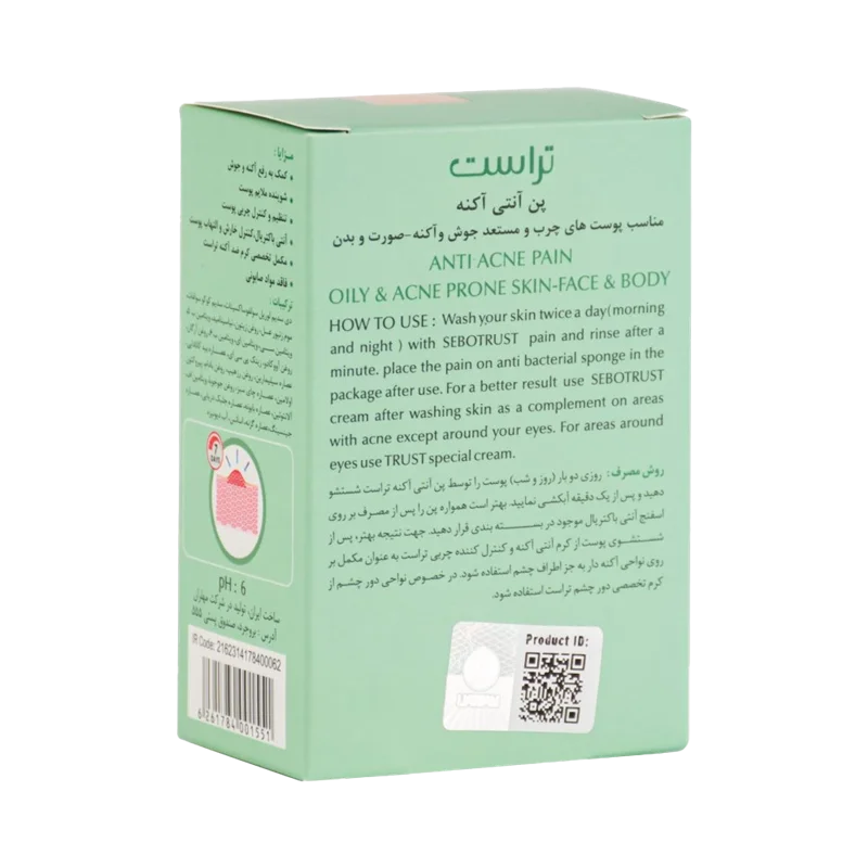 روزانه دوبار (صبح و شب) پوست را توسط پن آنتی آکنه تراست شستوشو دهید و پس از یک دقیقه آبکشی نمایید. بهتر است همواره پن را پس از مصرف روی اسفنج آنتی باکتریال موجود در بسته بندی قرار دهید.