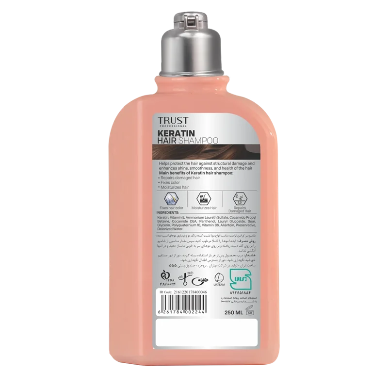 کراتین، ویتامین E، آمونیوم لورت سولفات، کوکامیدوپروپیل بتائین، کوکامید DEA، پانتنول، لوریل گلوکوزید، گوار، گلیسیرین، پلی کواترنیوم-10، ویتامین B6، آلانتوئین، نگهدارنده، آب دیونیزه