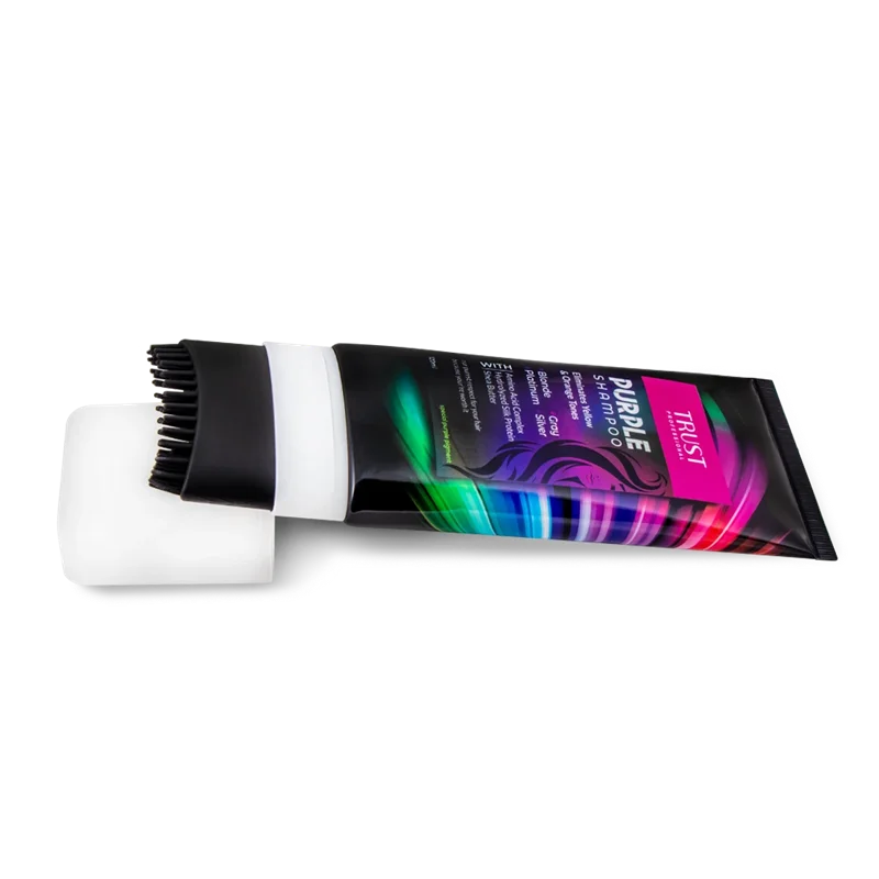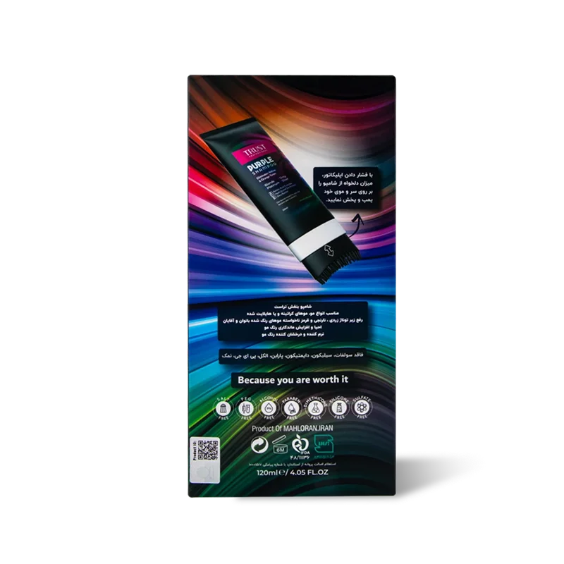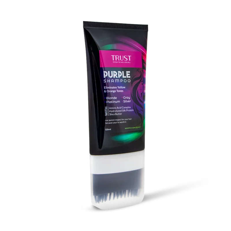 هفته ای یکبار شامپو بنفش تراست را بر روی موهای خیس ماساژ داده و اجازه دهید تا پنج دقیقه آغشته بماند سپس با آب بشوئید. پیشنهاد می گردد هنگام مصرف از دستکش یکبار مصرف استفاده شود.